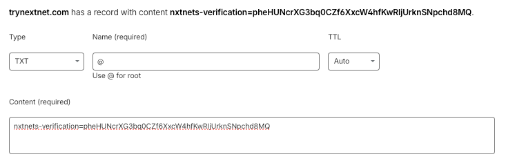 To do so you will login into your DNS manager, this may be your domain registrar or a 3rd party platform such as Cloudflare. If you have questions on where this should be updated, please reach out to our team at support@app.nextnet.ai and we would be happy to walk you through this process.